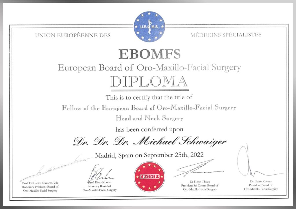 Nachfolgend finden Sie einen Überblick über die bedeutenden Auszeichnungen und Zertifikate, die ich im Bereich der Mund-, Kiefer- und Gesichtschirurgie in Graz in der Steiermark erhalten habe. Diese Erfolge belegen mein Engagement für höchste medizinische Standards und individuelle Betreuung. Die hohe Patientenzufriedenheit spiegelt sich in positiven Rückmeldungen wider und hat stets oberste Priorität in meiner Praxis.